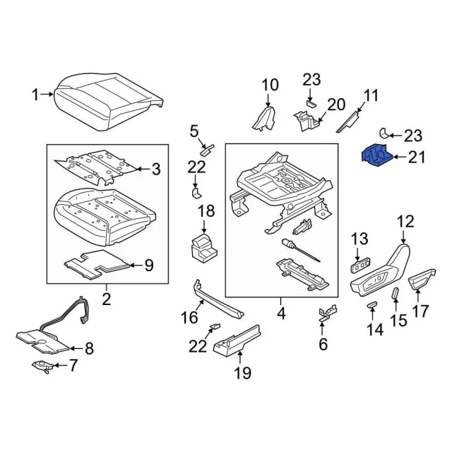Seat cushion, 2020-24, rear. Seat cushion, rear outer, black.